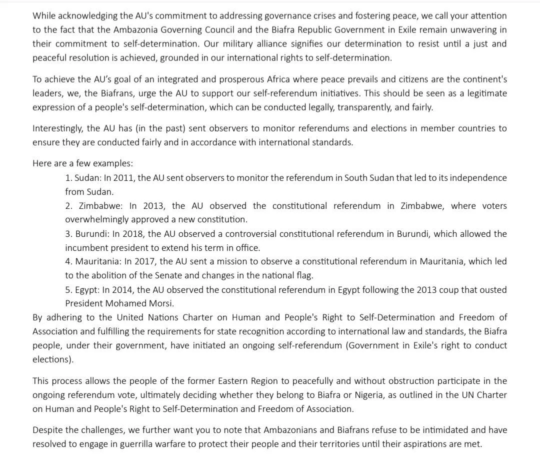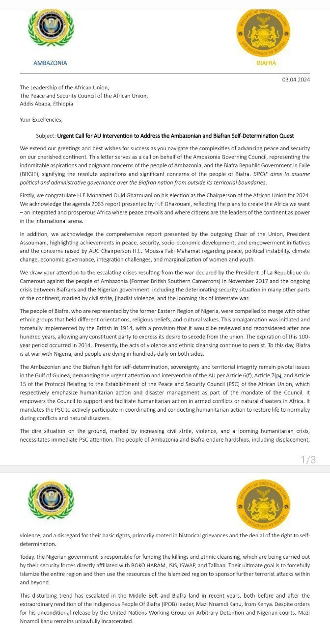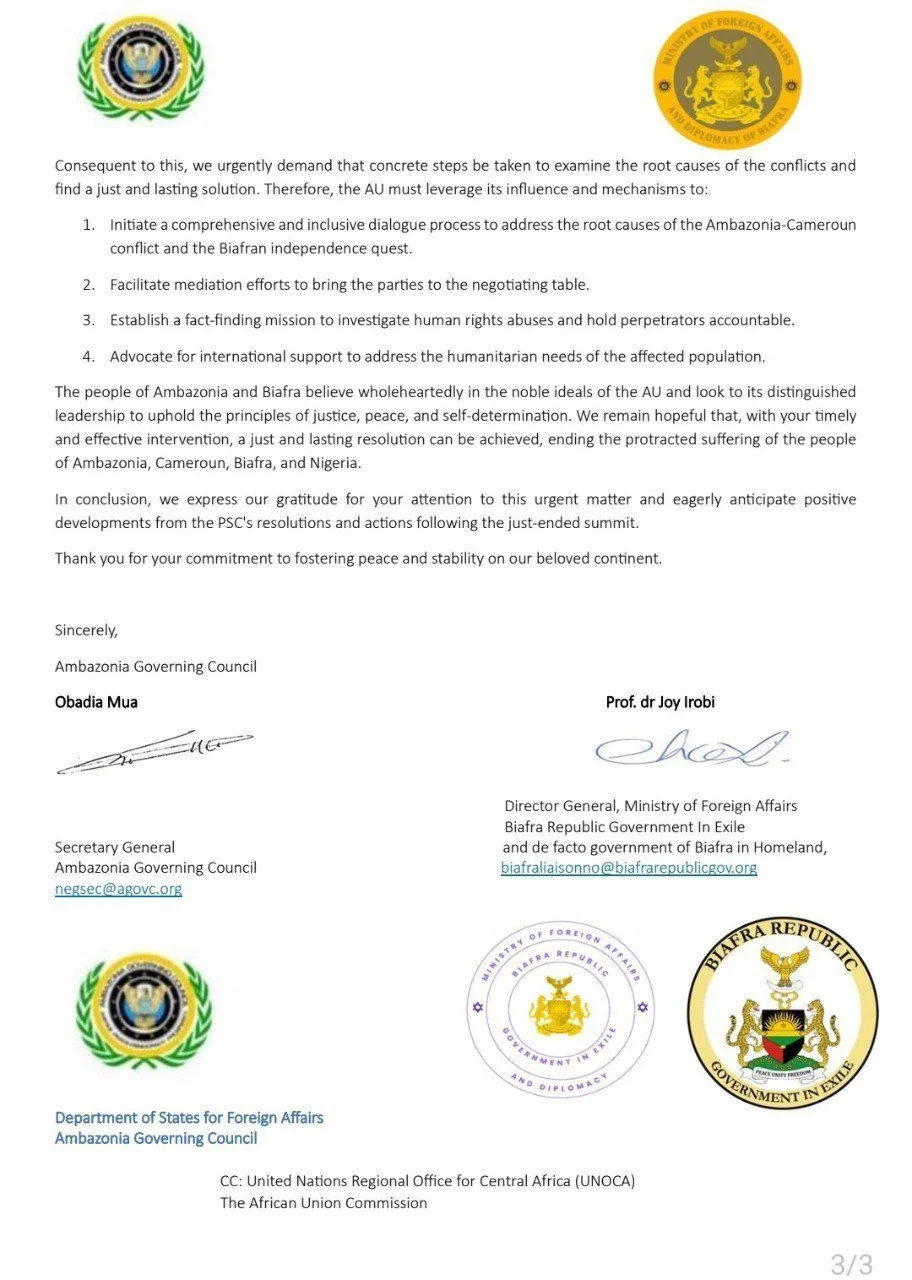 Biafra and Ambazonia write African Union