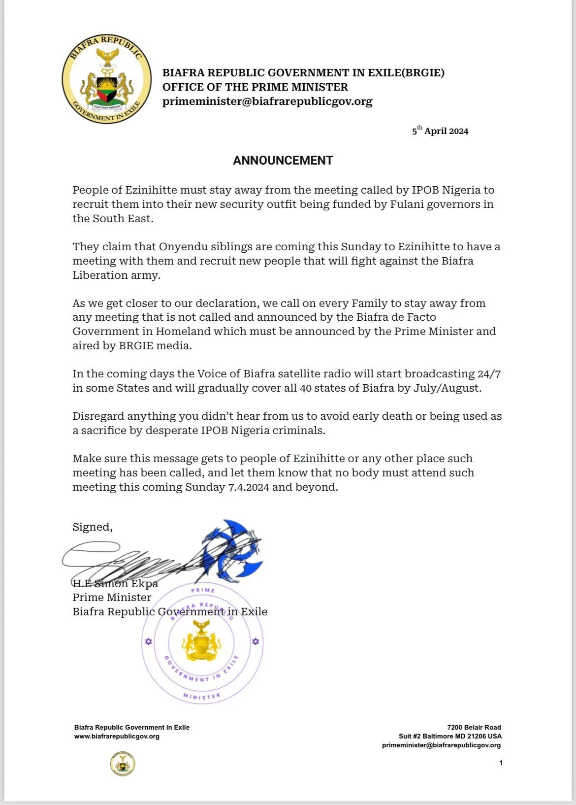 Biafra Government Adopts Bordeaux Declaration