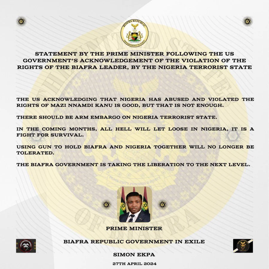 PM Responds to US Statement on the Abuse of Mazi Nnamdi Kanu Apr 29 Written By isaiah anyaogu isaiah anyaogu